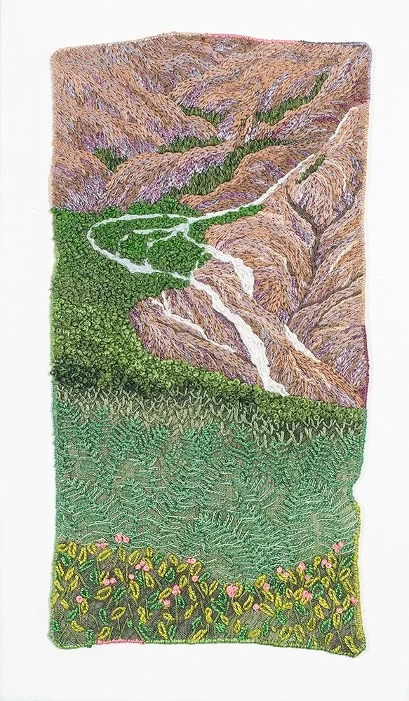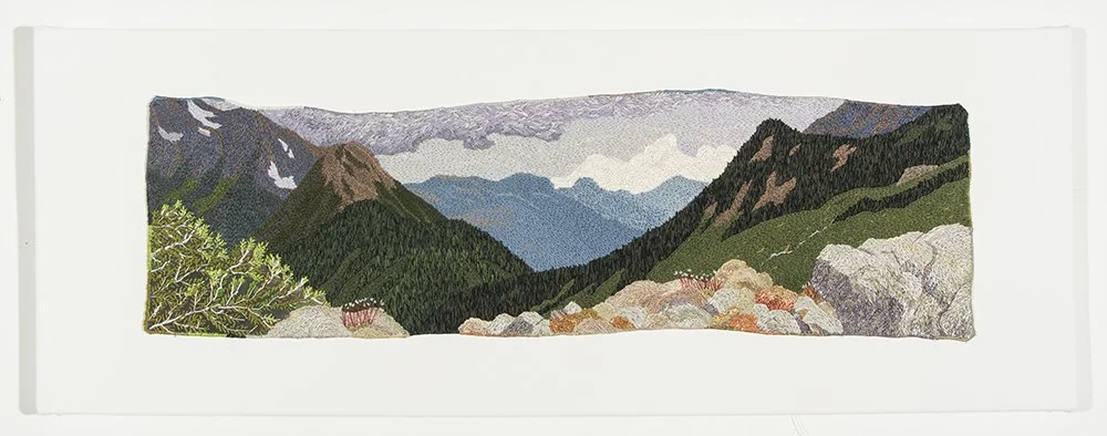 Kluane, Dusk (Outpost and Vulcan Mts) 10 x 28” hand embroidery $4200 Please contact La Guilde
